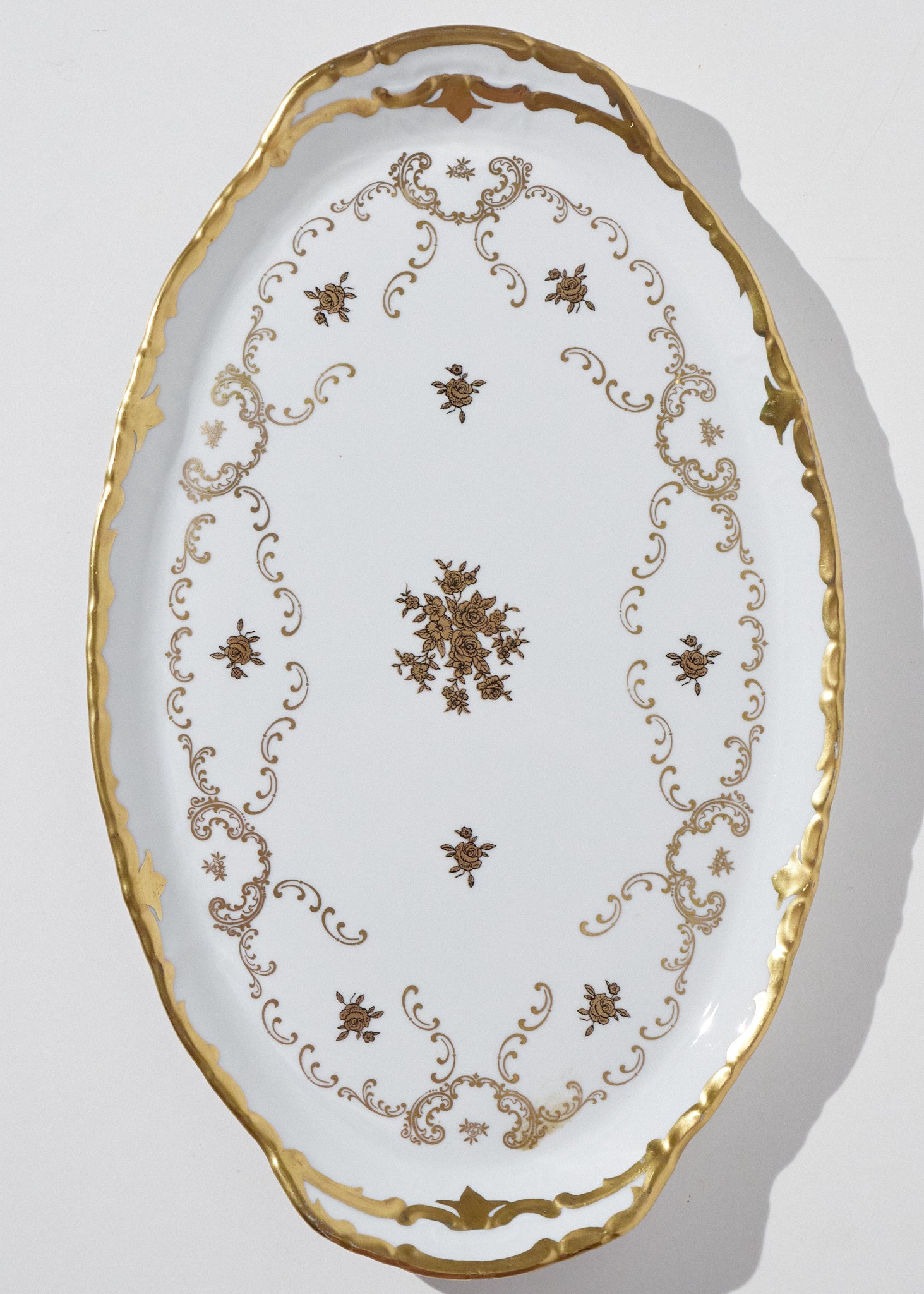 Rare Vintage Reichenbach Porcelain Gold White Oval Serving Platter 15"