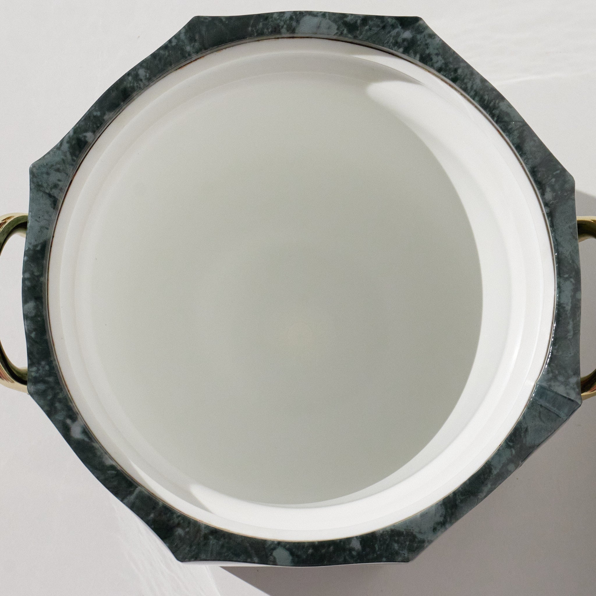 Green faux malachite pattern with brass accents