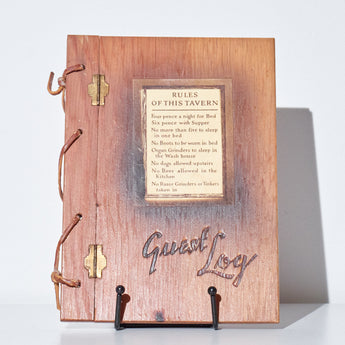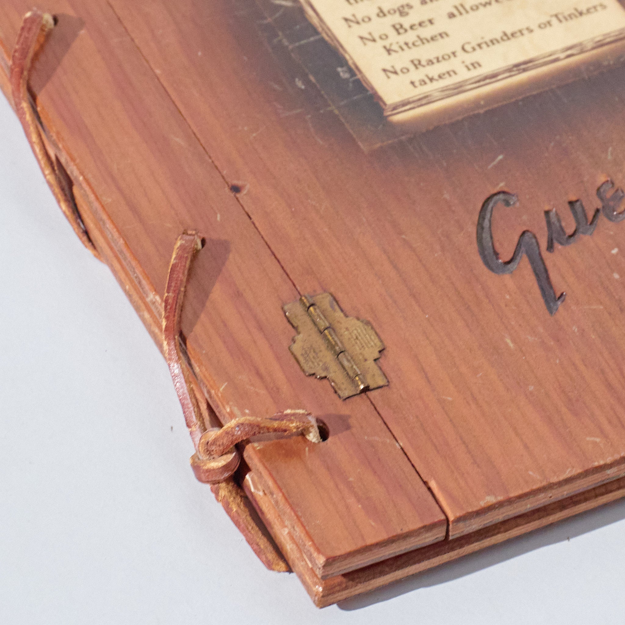 1930s Wooden Cover Guest Log with Rawhide Lacing + Brass Hinges | "Rules of This Tavern"