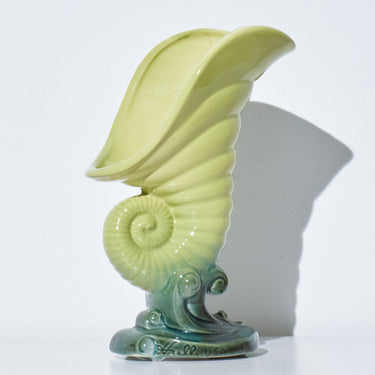Vintage 1951 Hull Pottery USA #102 Athena Cornucopia Green Spiral Shell Vase