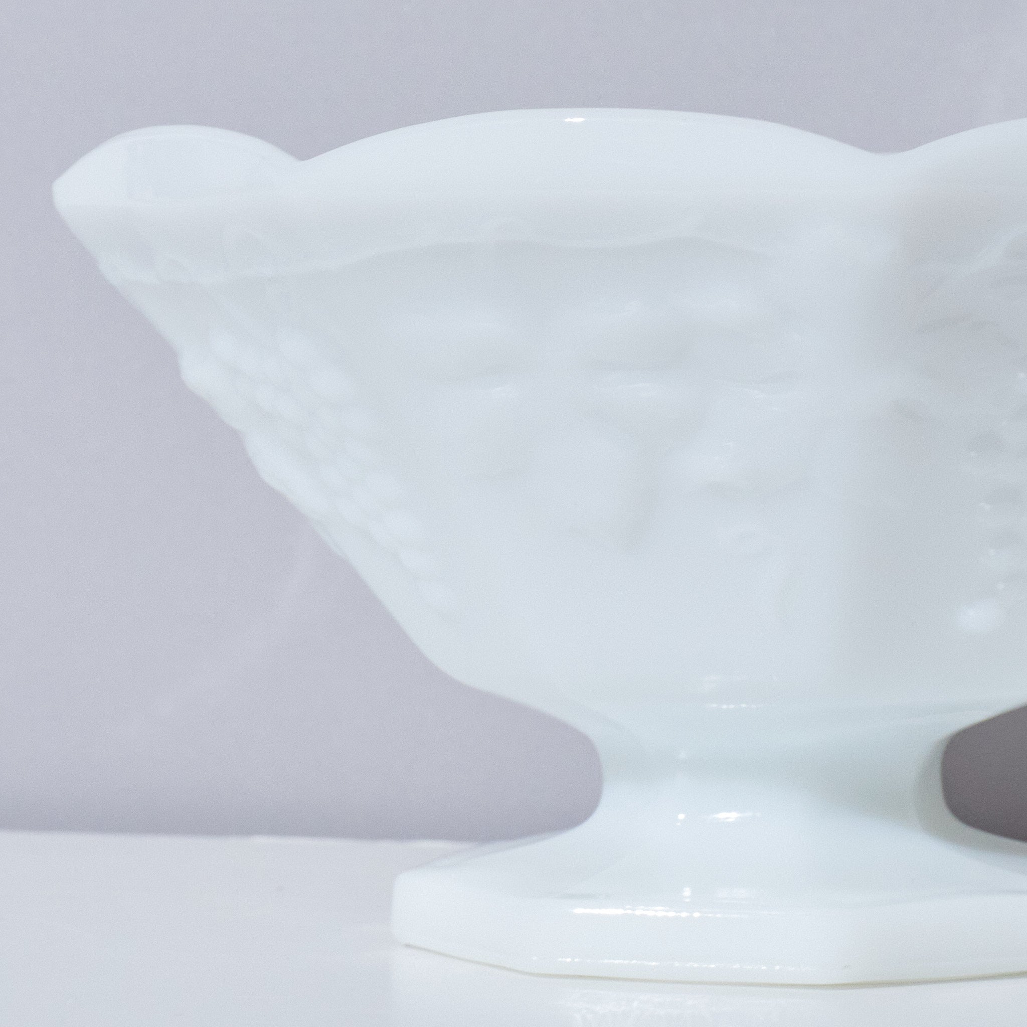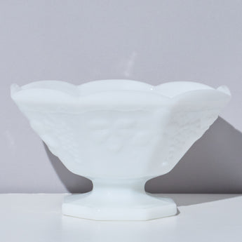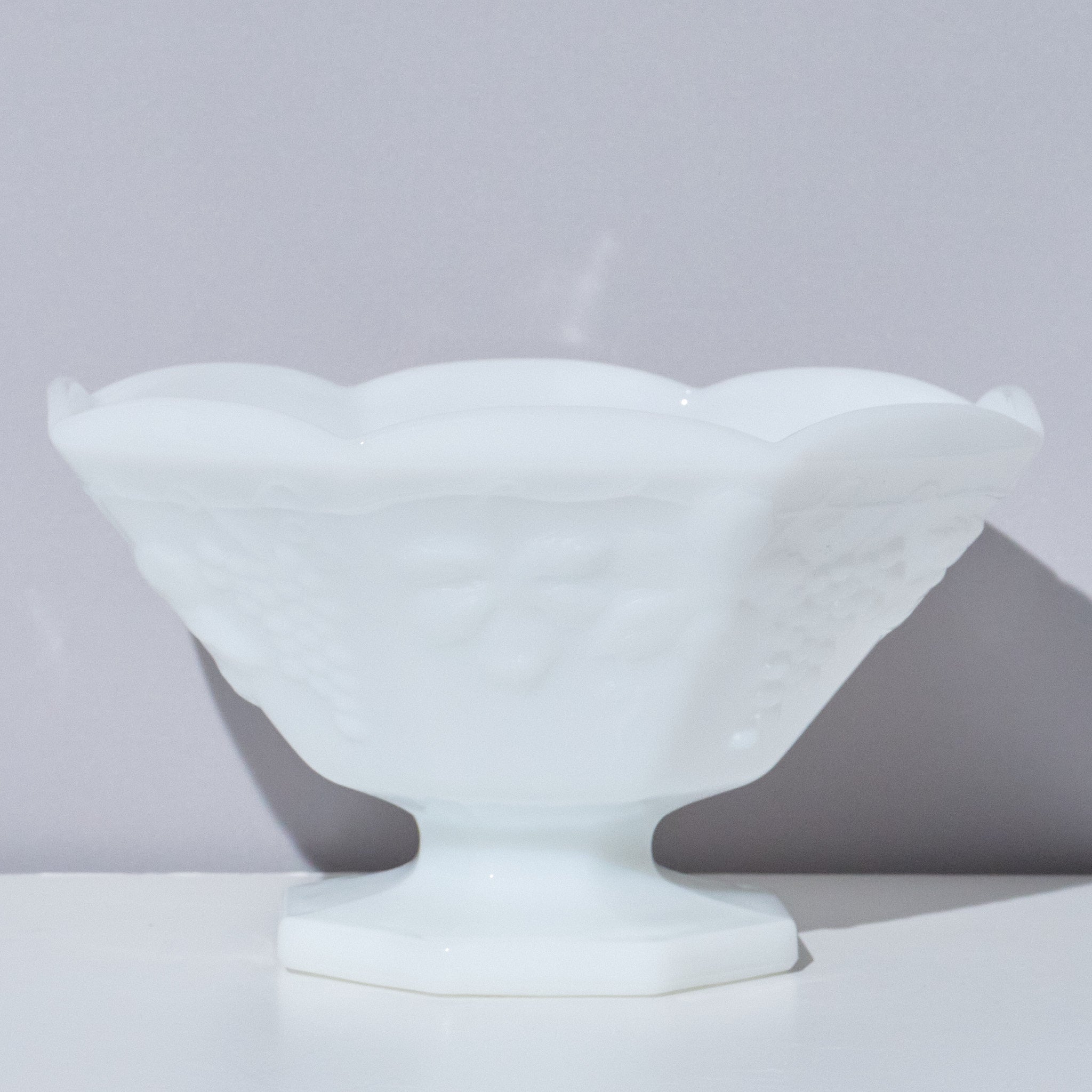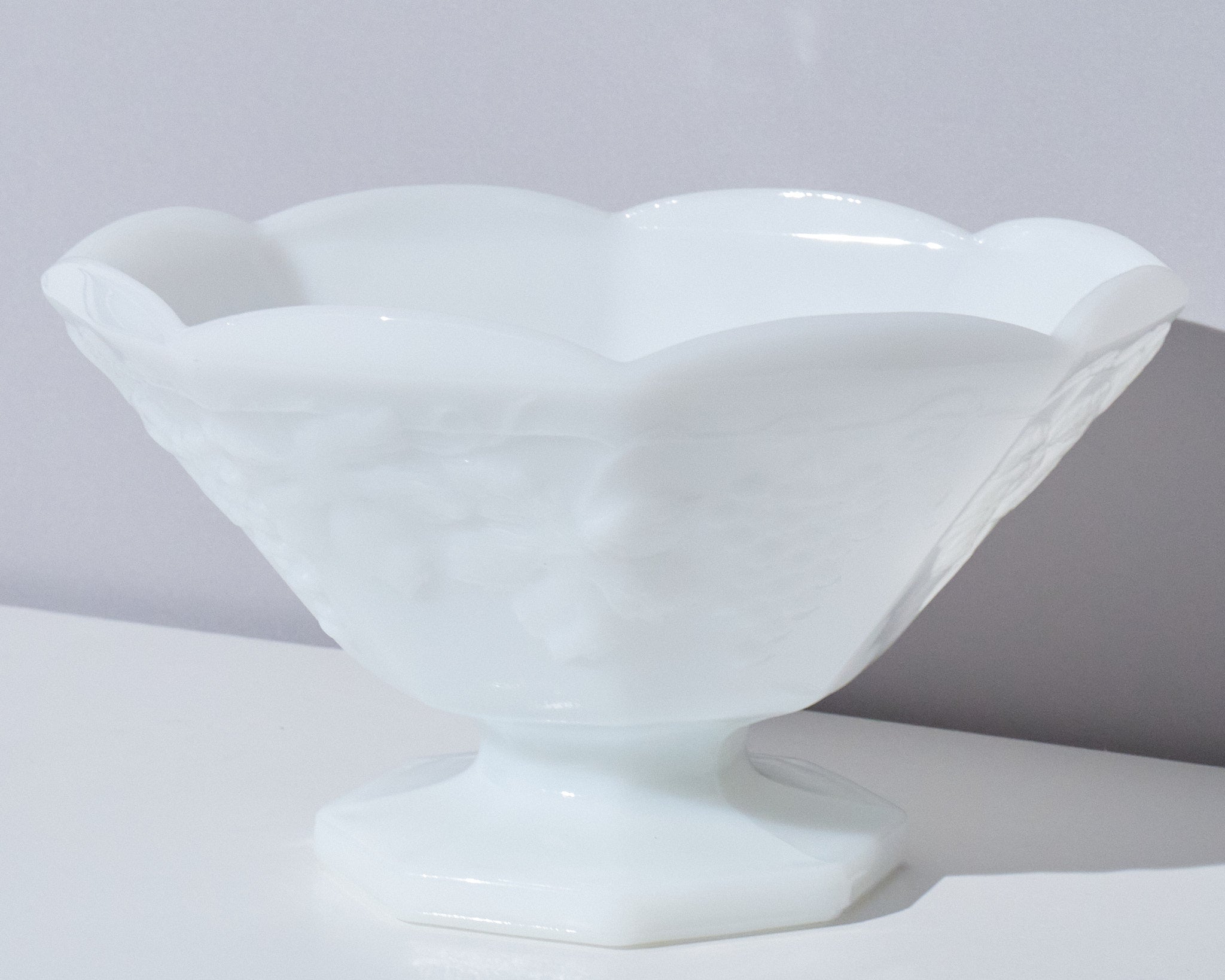 Lovely scallop-edged Anchor Hocking footed milk glass salad/fruit bowl.