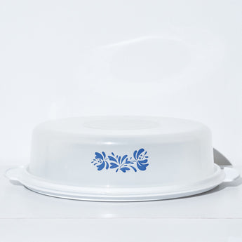 Vintage Pie/Cake holder. Pyrex inspired.Measurements: 14" Diameter x 3 1/2" HCondition: Very good vintage condition. Appears to have hardly been used.