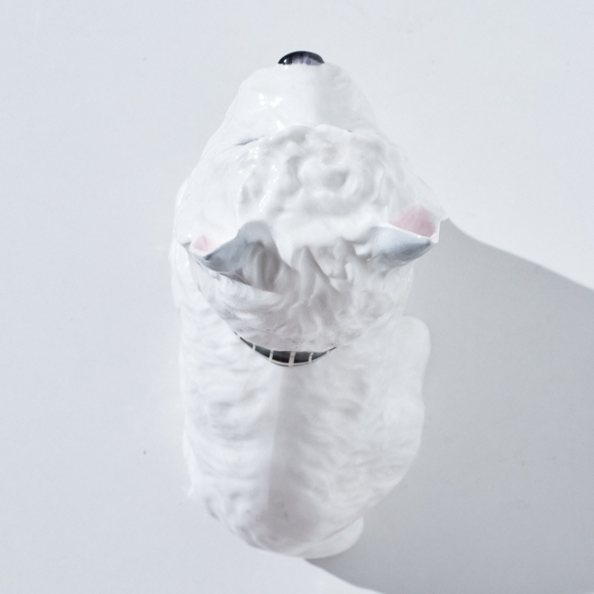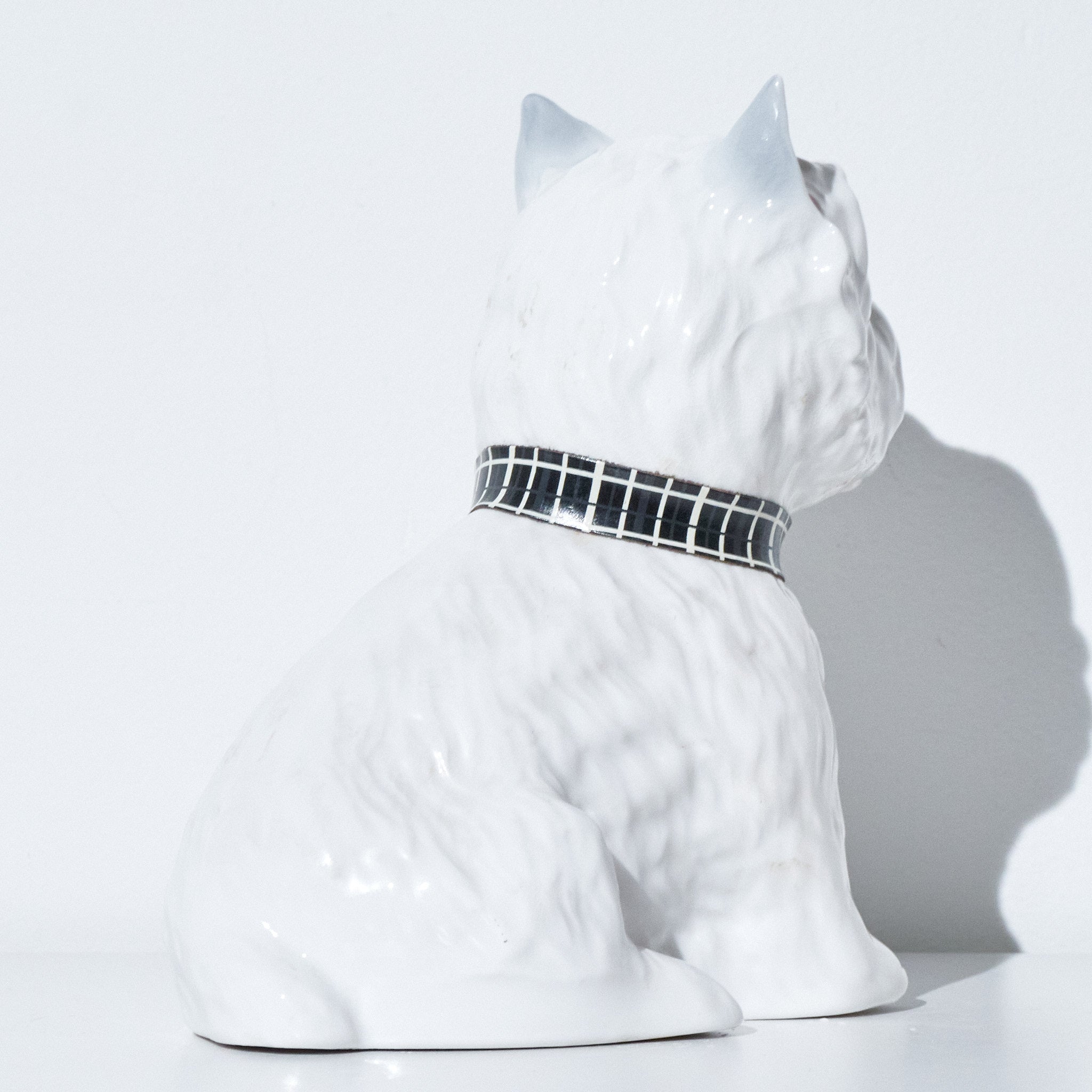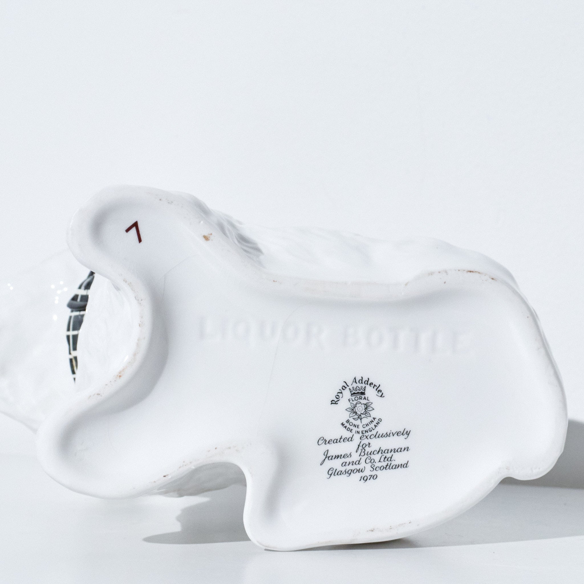 Darling vintage c 1970 West Highland White Terrier is a Royal Adderley Bone China liquor bottle made in England. It was created exclusively for Jame Buchanan & Co., Glasgow, Scotland. Cute black and white plaid collar. This dog liquor bottle is a bit of a mystery as it no longer opens, but neither do ANY of these from that era. I would not attempt to twist it open. Disclaimer: If an attempt is made to open it and it breaks, it cannot be returned.